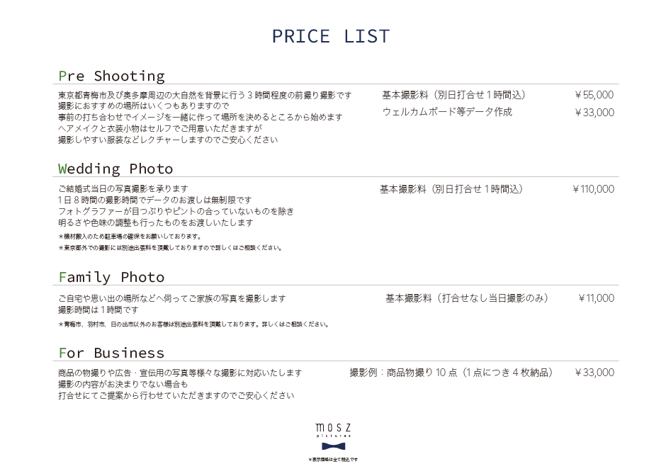 さまざまな撮影プランをご用意してお待ちしております。